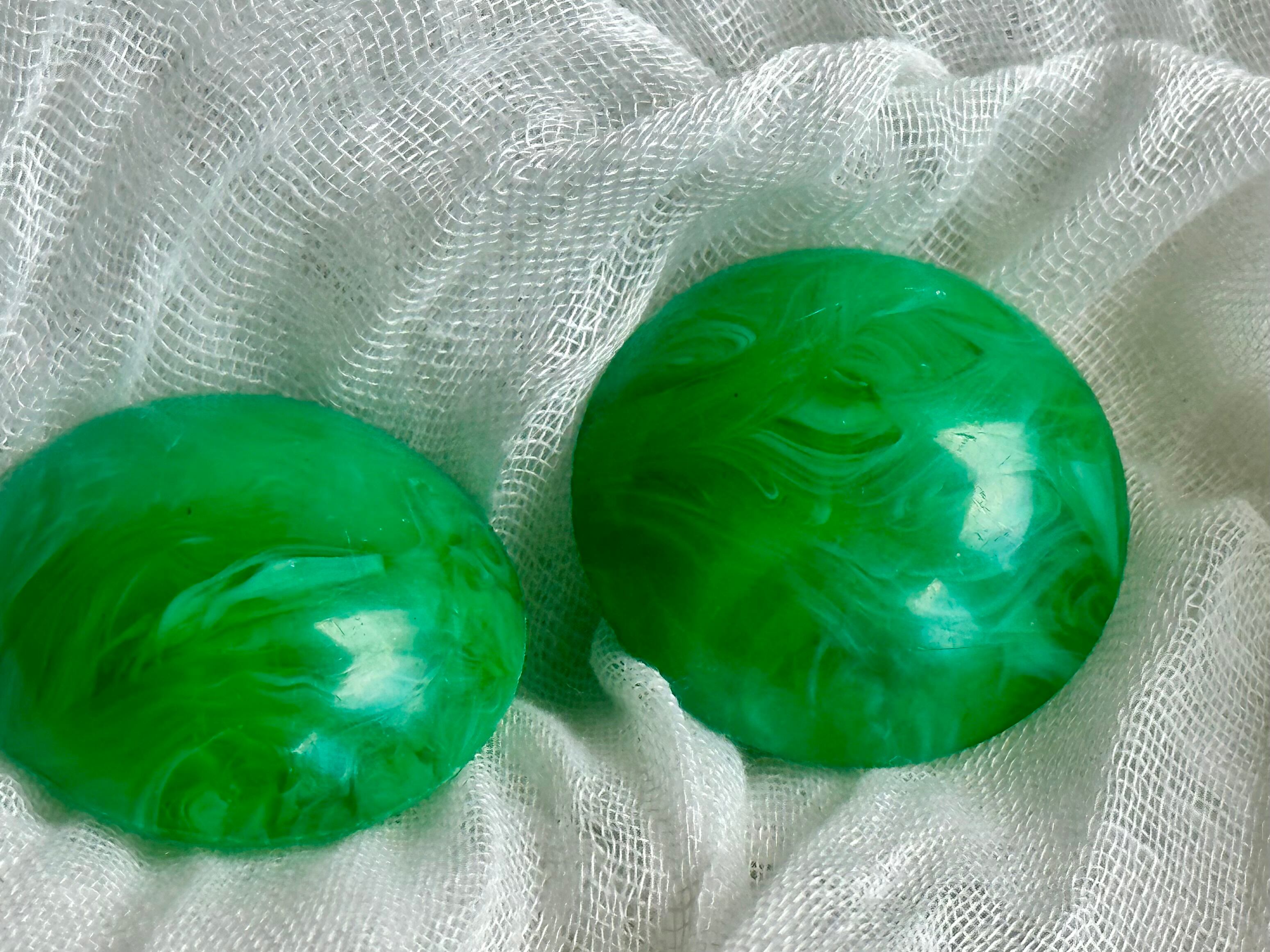 ユニークなデザインと深いグリーンが印象的なイヤリング。